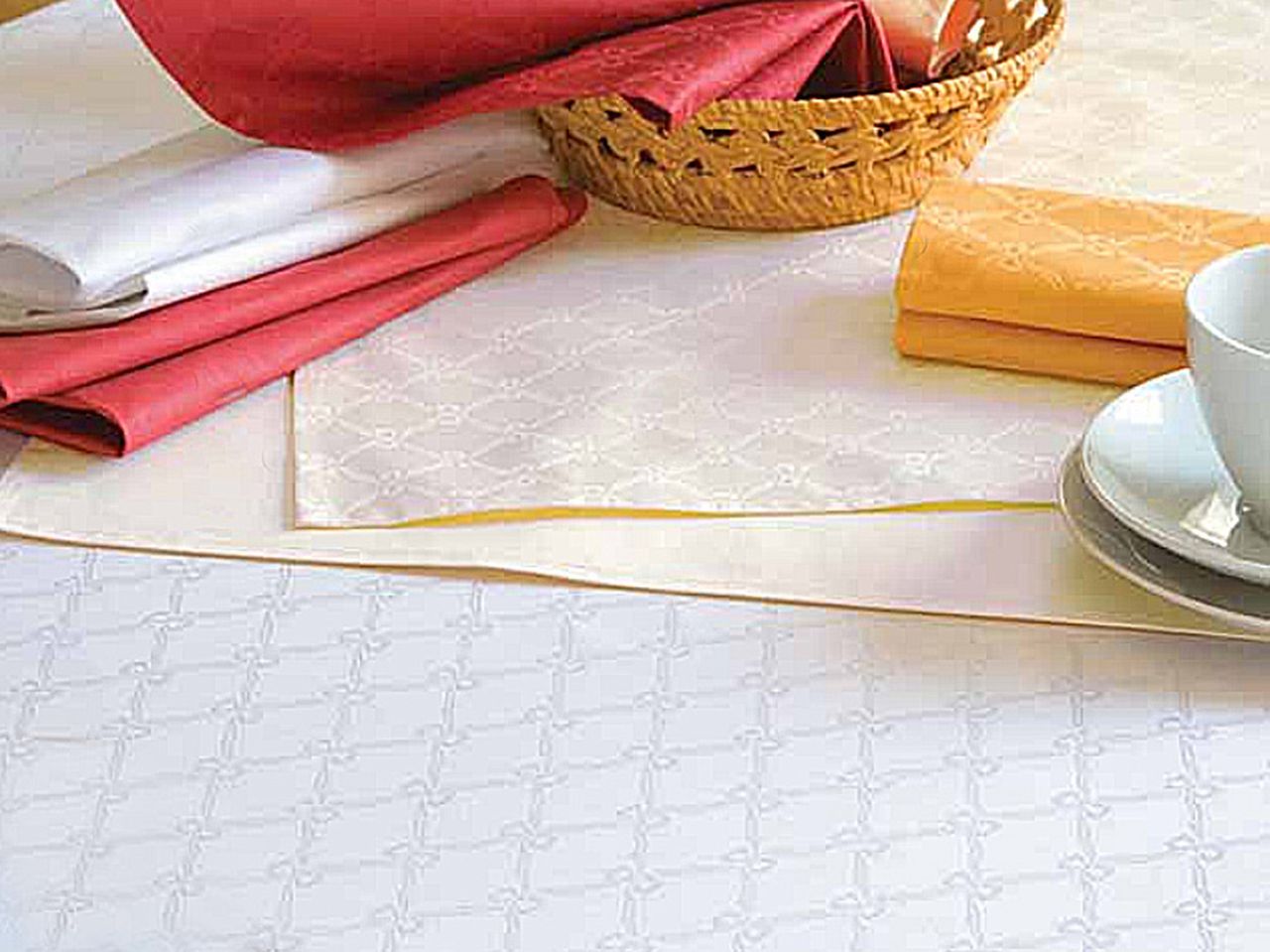 Wir haben weitere Damast-Tischdecken mit dem klassischen Damast-Muster "Fina" in unserem Programm: