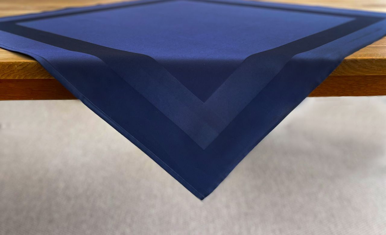 Material & Pflege "Mitteldecke Padua, marine-dunkelblau, mit Atlaskante, 80x80"