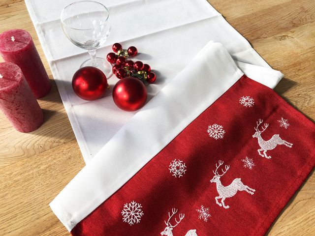 Weiterführende Links zu "Weihnachtstischläufer Kurt, rot-weiß, mit Elchen, 40x140"