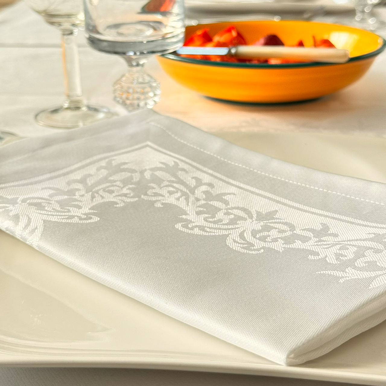 6 Damast-Servietten Fina, weiß, mit klassischem Muster, 50x50